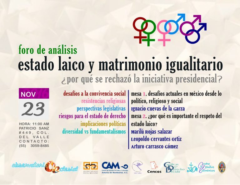 El Observatorio Eclesial, en México, junto a otras instituciones, invitan al foro de análisis: “estado laico y matrimonio igualitario”, el 23 de noviembre, a partir de las 11 a.m.