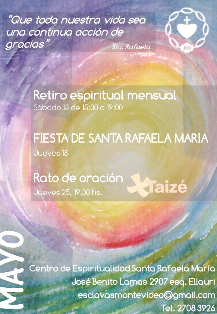 El Centro de Espiritualidad Santa Rafaela María comparte su programación para el mes de mayo.