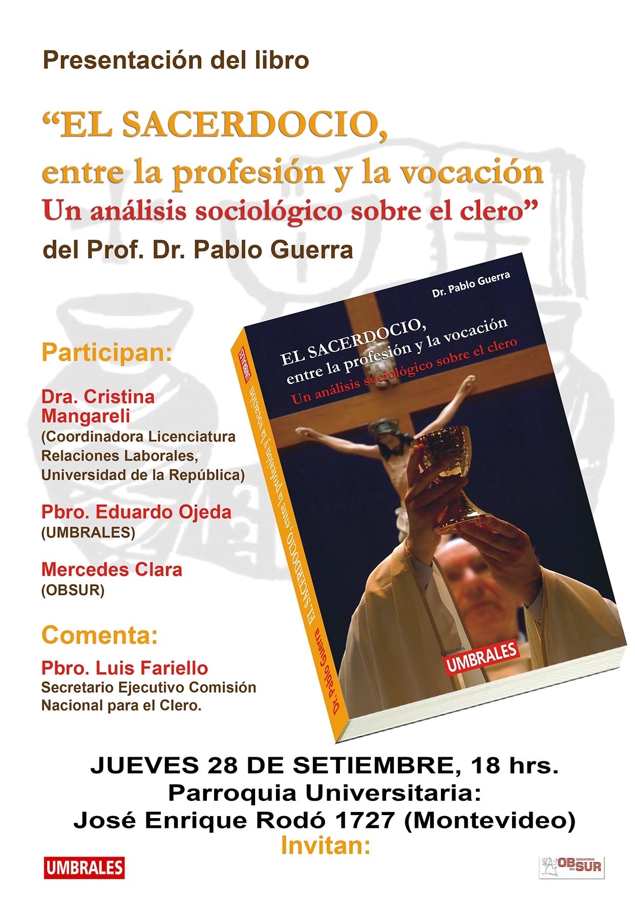 El jueves 28 de septiembre tendrá lugar en Montevideo el lanzamiento del libro “El sacerdocio, entre la profesión y la vocación”, del Prof. Dr. Pablo Guerra...
