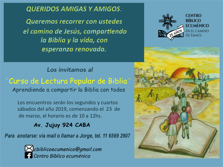 El Centro Bíblico Ecuménico ‘En el Camino de Emaú’ de Buenos Aires invita al curso de lectura popular de la Biblia “Aprendiendo a compartir la Biblia con todos”