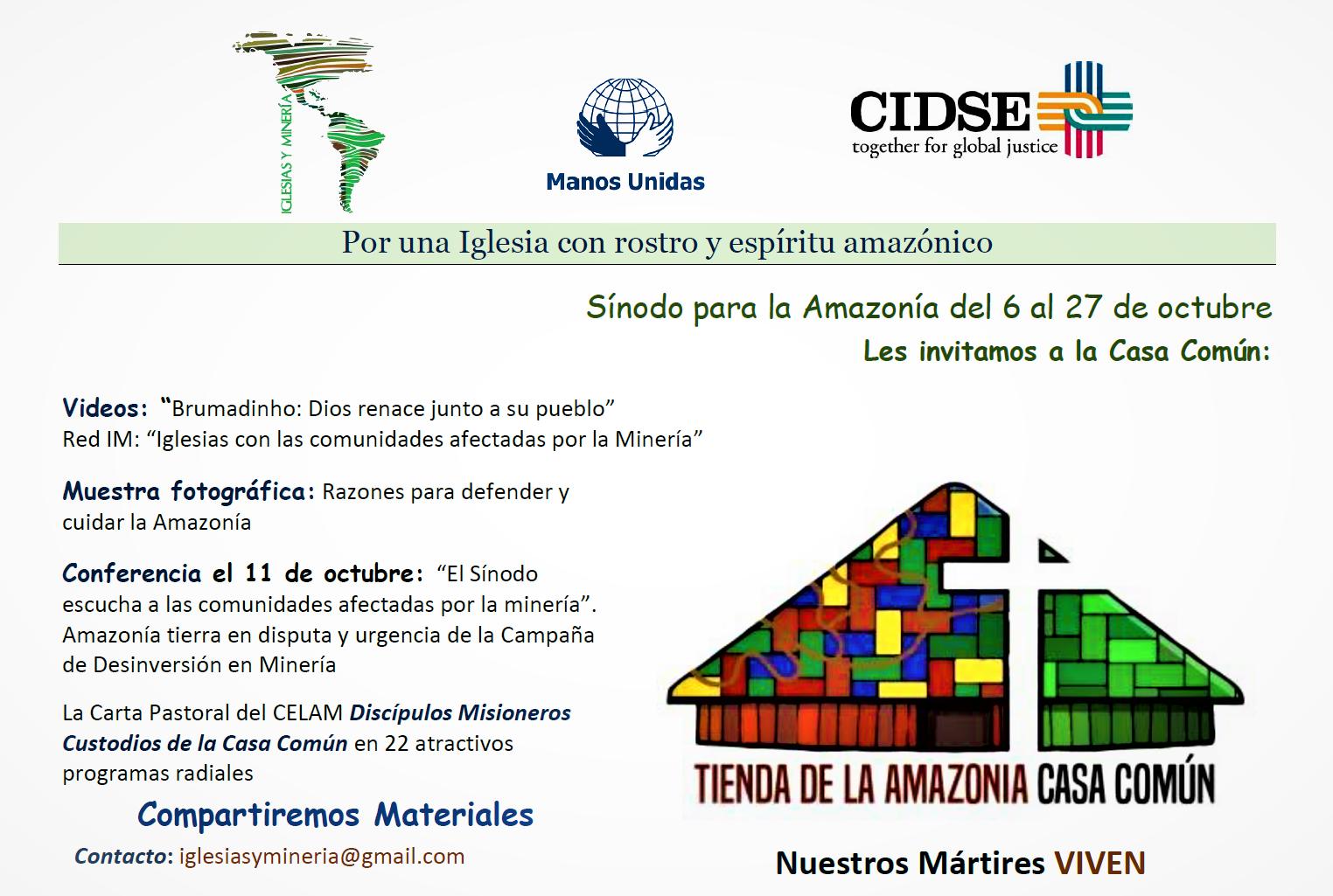 Por una Iglesia con rostro y espíritu amazónico, durante el Sínodo de la Amazonía (6 al 27 de octubre) los invitamos a la “Casa Común”. Tienda de la Amazonía, casa común…