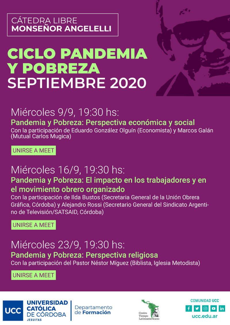 El Departamento de Formación de la Universidad Católica de Córdoba invita a la Cátedra libre “Monseñor Angelelli” que desarrollará el Ciclo “Pandemia y Pobreza”…