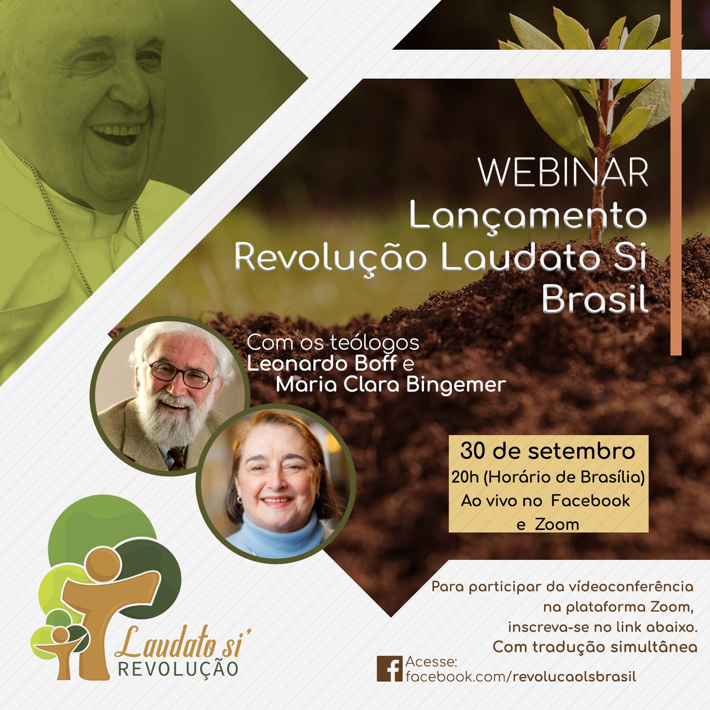 Invitación al webinar de lanzamiento de “Revolución Laudato Si’ Braisl” con la participación de los teólogos Leonardo Boff y Maria Clara Bingemer…