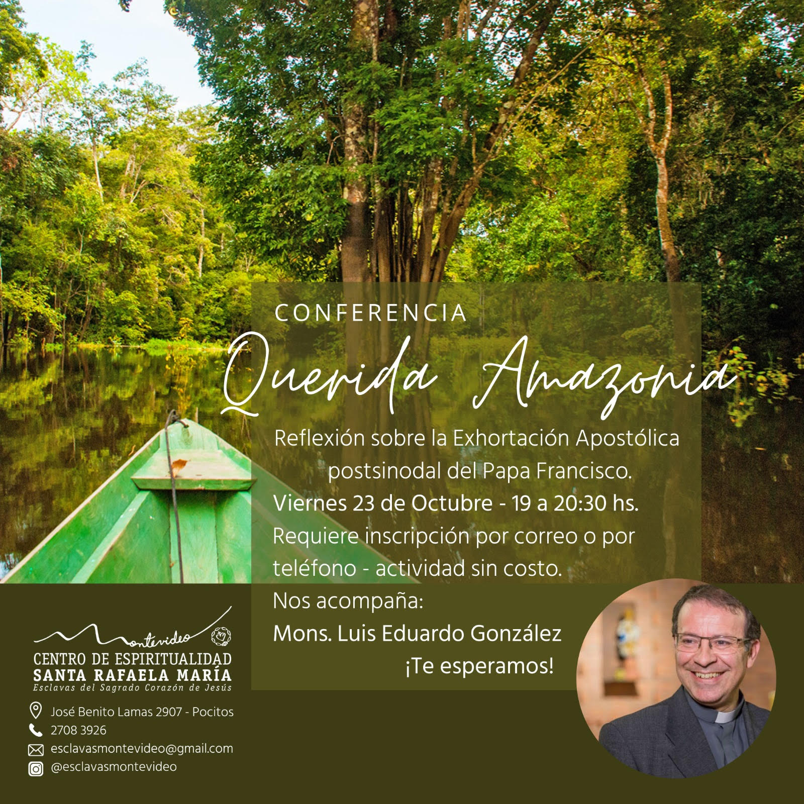El Centro de Espiritualidad Santa Rafaela María de Uruguay invita a la conferencia “Querida Amazonía”, el próximo 23 de octubre, con la participación de Mons. Luis Eduardo González…
