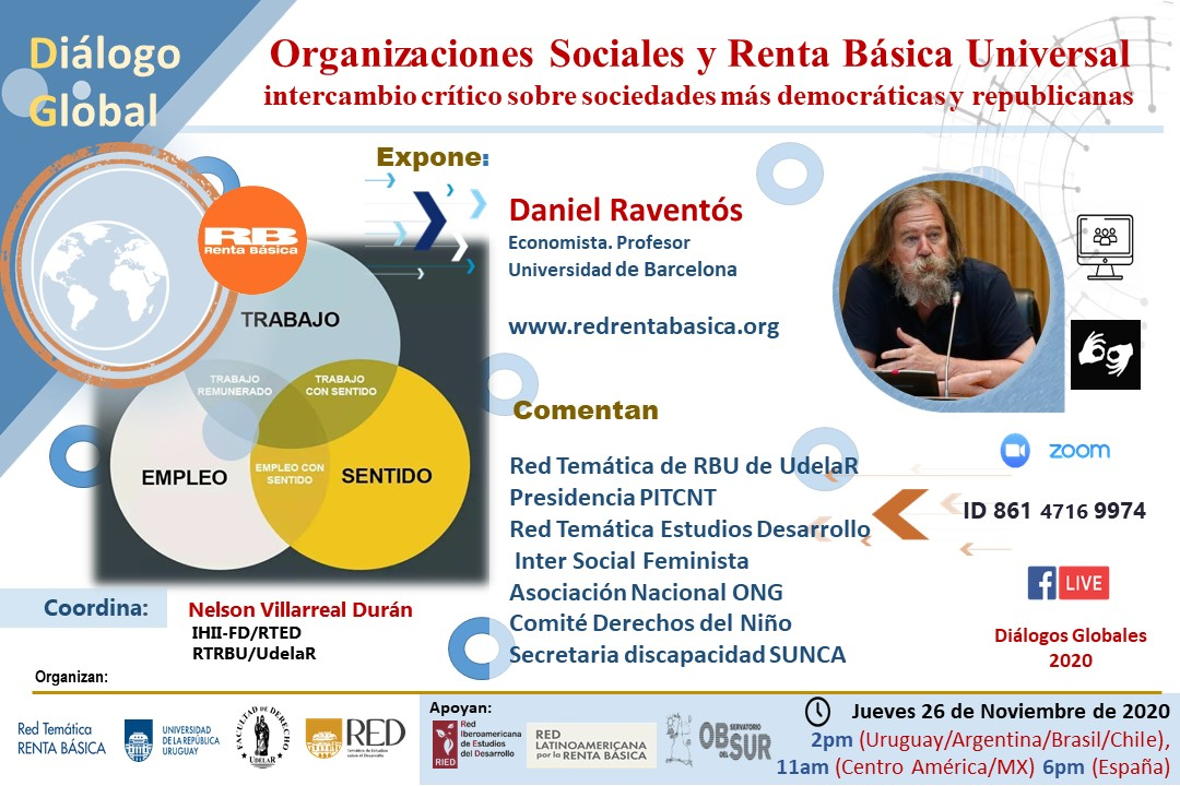 Con la participación del economista Daniel Raventós tendrá lugar el diálogo global “Organizaciones sociales y renta básica”…