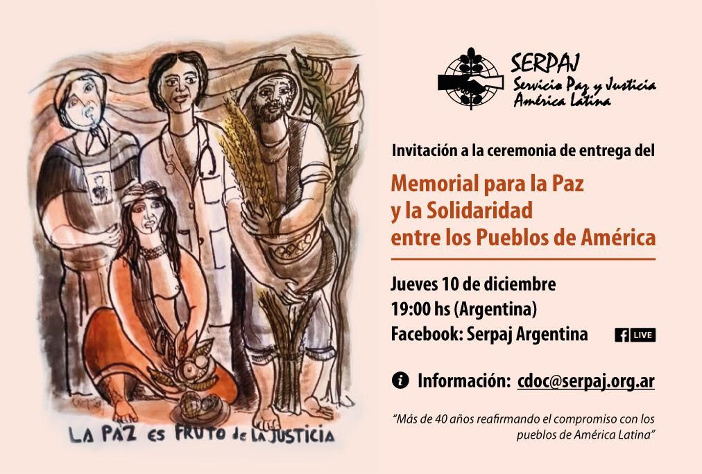 El Servicio Paz y Justicia América Latina (SERPAJ) invita a la ceremonia de entrega del Mermorial para la Pay y la Solidaridad entre los pueblos de América Latina…