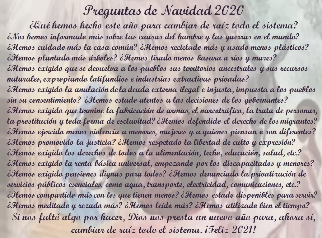 ¿Qué hemos hecho este año para cambiar de raíz todo el sistema? ¿Nos hemos informado más sobre las causas del hambre y las guerras del mundo?…