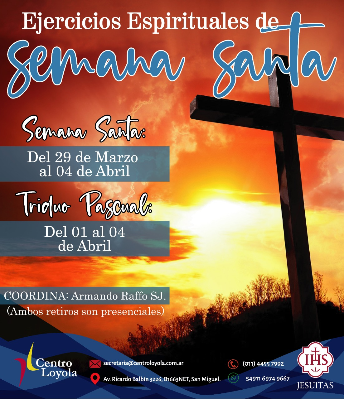 El Centro Loyola invita a los Ejercicios Espirituales de Semana Santa coordinados por Armando Raffo, SJ…