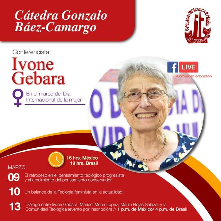 La Cátedra Gonzalo Báez-Camargo invita a la conferencia de Ivone Gebara en el marco del día de la mujer los días 9, 10 y 13 de marzo…