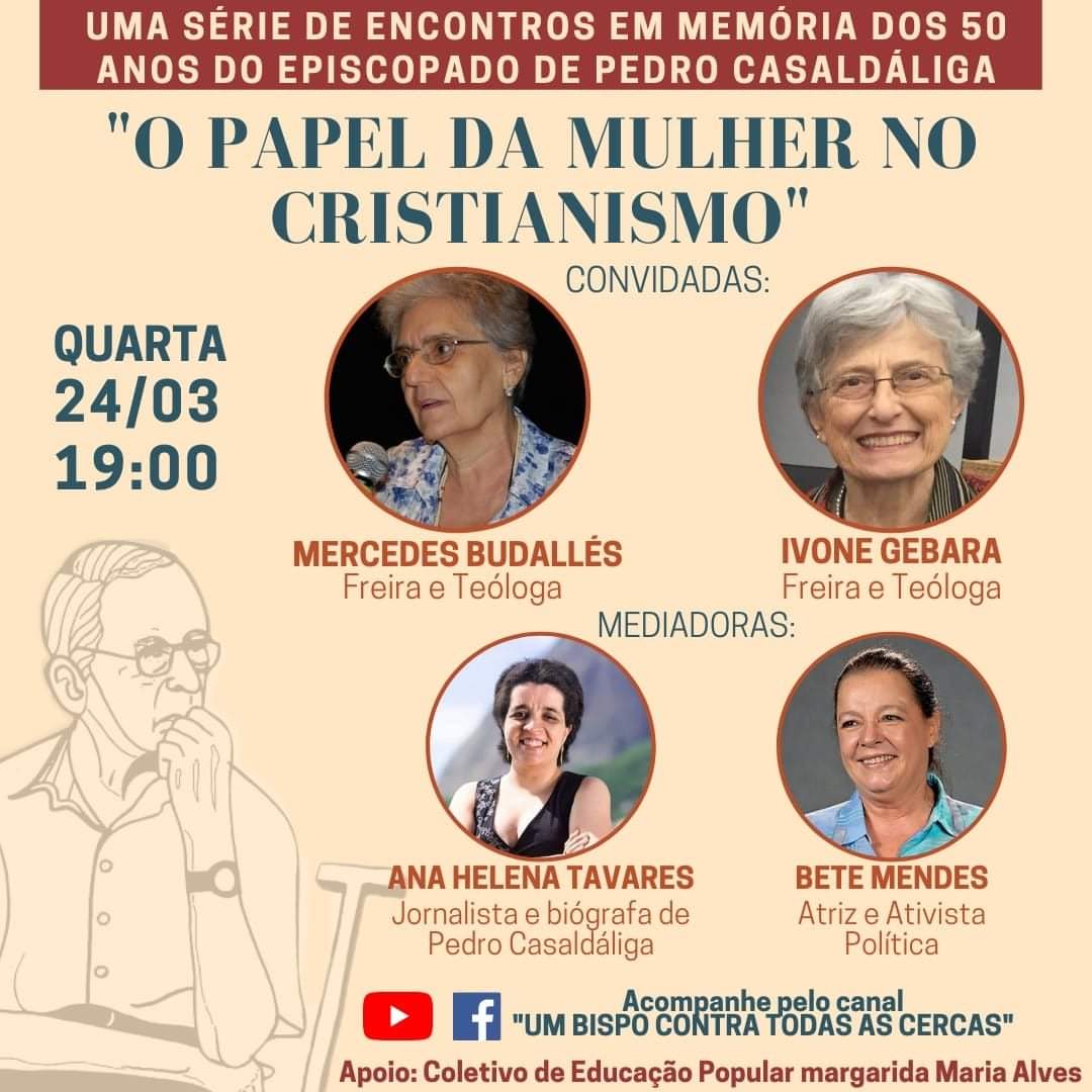 “O papel da mulher no cristianiso” é o título do encontro virtual promovido pelo Coletivo de Educação Popular Margarida Maria Alves na série de encontros em memória dos 50 anos do episcopado de Pedro Casaldáliga…