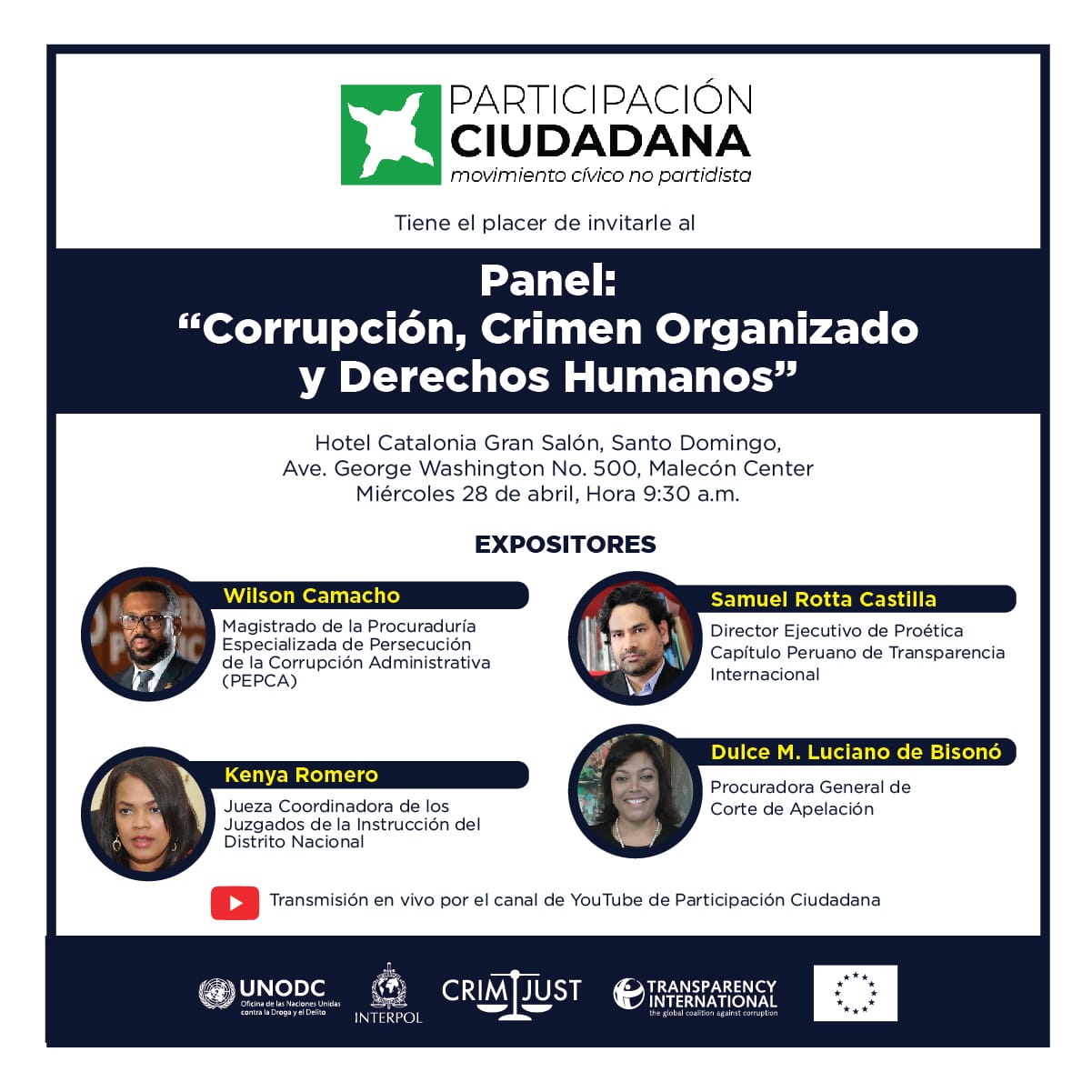 El Movimiento Cívico no partidista “Participación Ciudadana” invita al panel “corrupción, crimen organizado y derechos humanos”…
