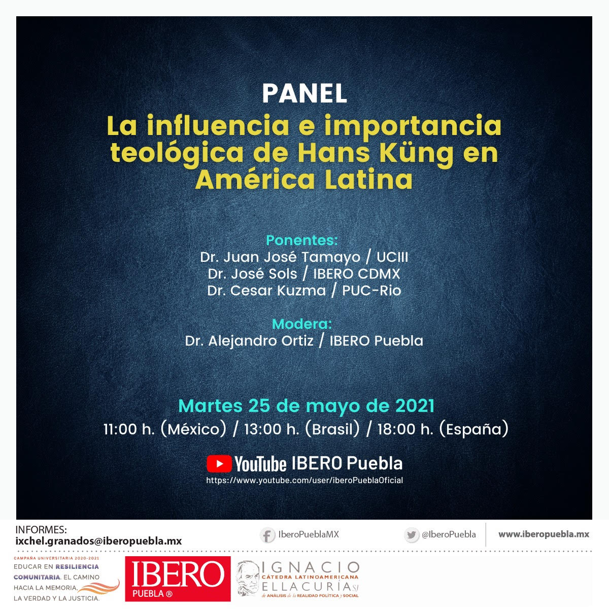 La Universidad Iberoamericana de Puebla (México), invita al Panel sobre “la influencia e importancia teológica de Hans Küng en América Latina”, con la participación de Juan José Tamayo, José Sols y Cesar Kuzma. Modera: Alejandro Ortiz…