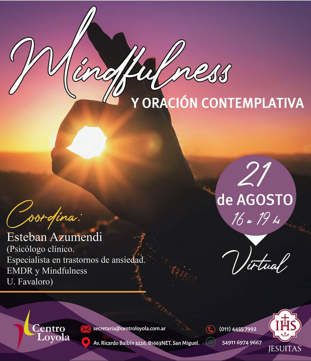 El Centro Loyola de Argentina invita al evento virtual “Mindfulness y oración contemplativa”…
