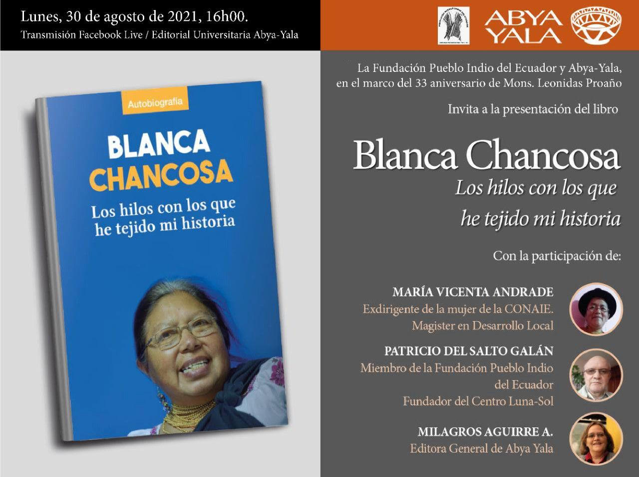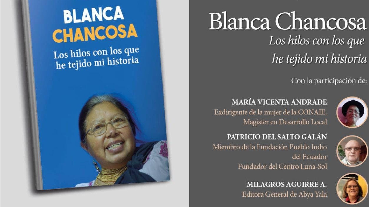 La Editorial Abya Yala invita a la presentación del libro de Blanca Chancosa “Los hilos con los que he tejido mi historia”, con la participación de María Vicenta Andrade, Patricio del Salto Galán y Milagros Aguirre…
