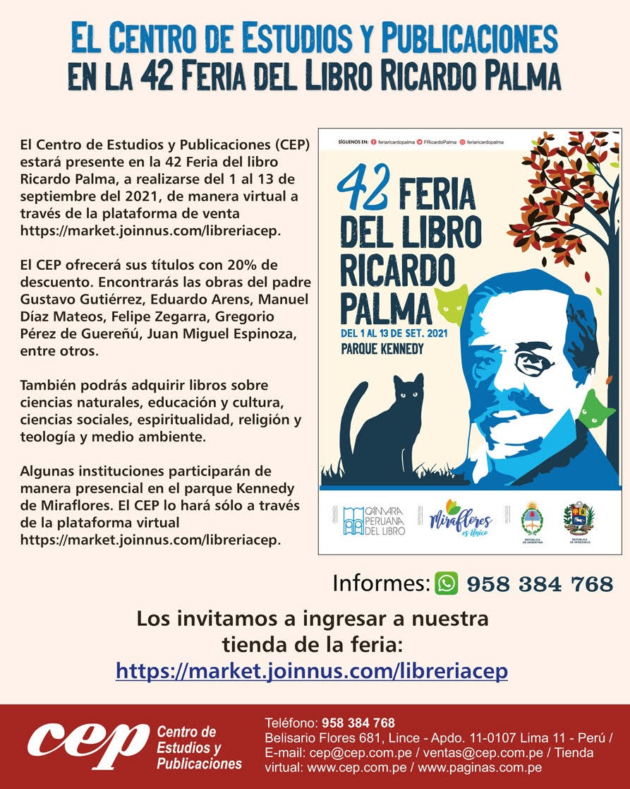 El Centro de Estudios y Publicaciones CEP estará presente en la 42 Feria del Libro Ricardo Palma a realizarse de manera virtual del 1º al 13 de septiembre…