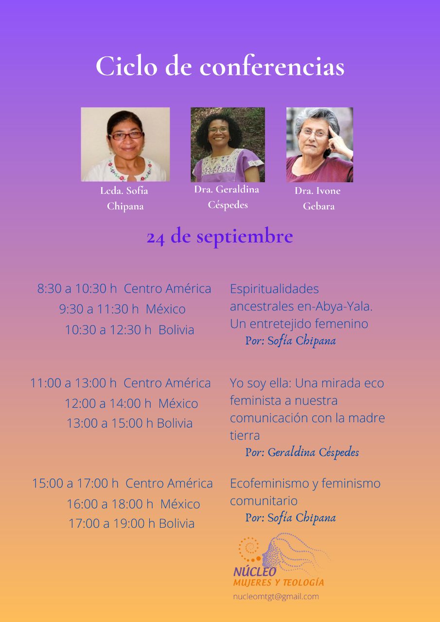 El núcleo Mujeres y Teología invitan al ciclo de conferencias sobre espiritualidades, ecofeminismo y feminismo comunitacio, con la participación de Sofía Chipana, Geraldina Céspedes e Ivone Gebara…
