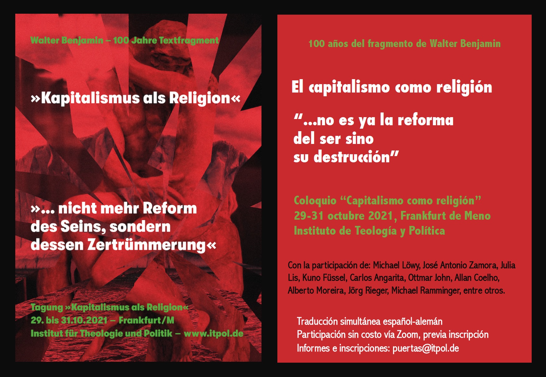 El Institut für Theologie und Politik invita al coloquio “El capitalismo como religión” a propósito de los 100 del fragmento de Walter Benjamin sobre esta temática…