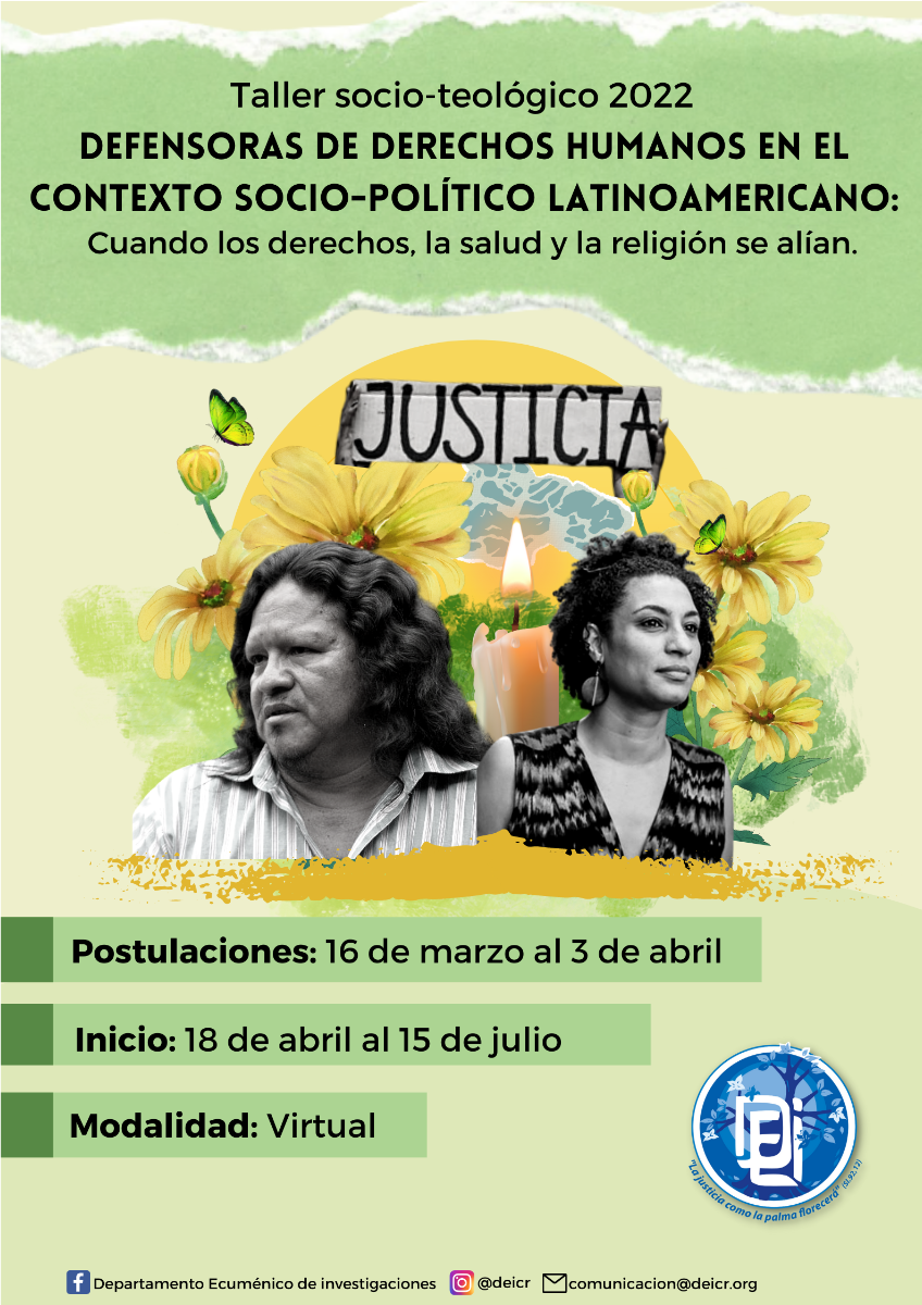 El Departamento Ecuménico de Investigaciones (DEI) invita al taller socio-teológico 2022: “Defensoras de derechos humanos en el contexto socio-político latinoamericano”…