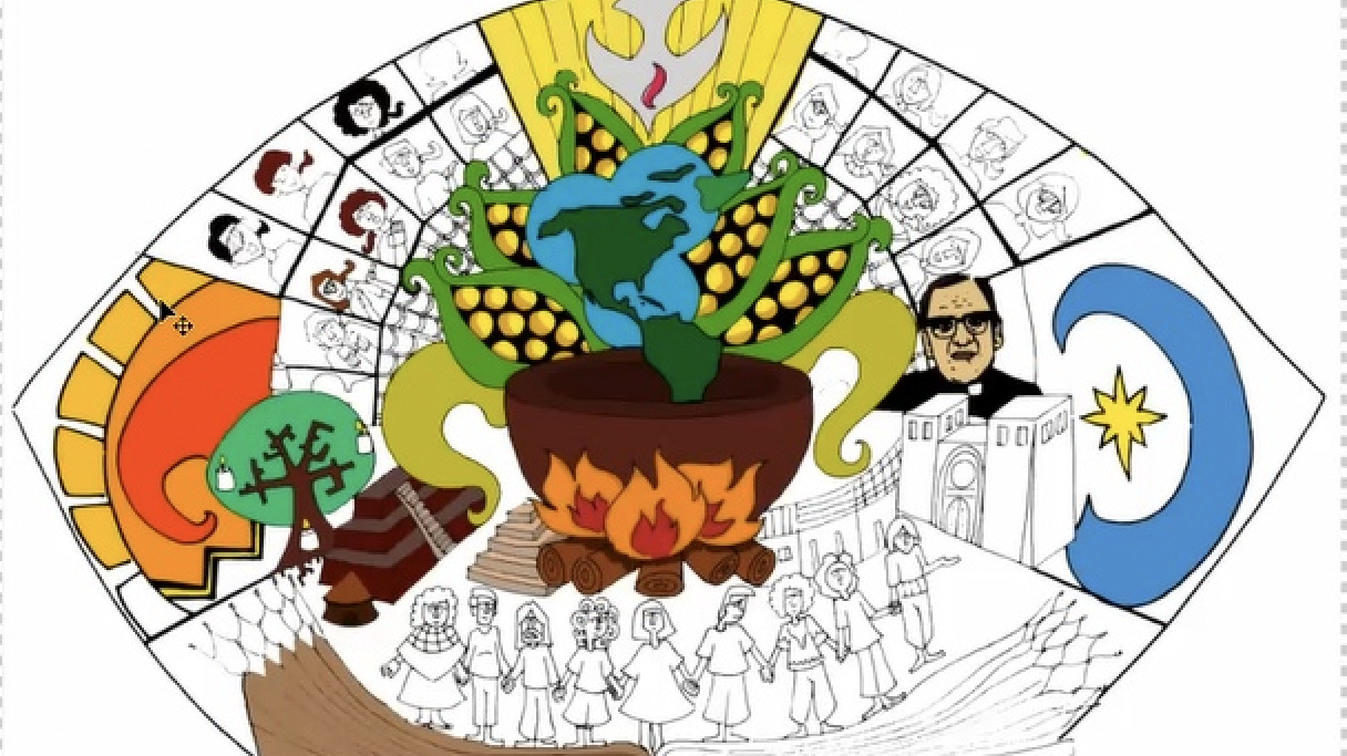 Tuvimos un espacio para despertar el cuerpo con el arte. Algunos compañeros artistas presentaron el avance en el logo que acompañará nuestra Minga Continental de Teología de la Liberación en El Salvador. Un mosaico hermoso lleno de colores, pieles, figuras, experiencias, voces y memoria. Un esfuerzo por condensar estos años de camino como Escuelita.