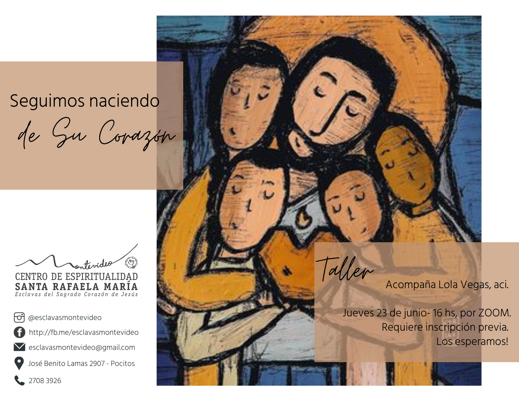 El Centro de Espiritualidad Santa Rafaela María invita al taller “Seguimos naciendo de su corazón” con el acompañamiento de Lola Vegas…