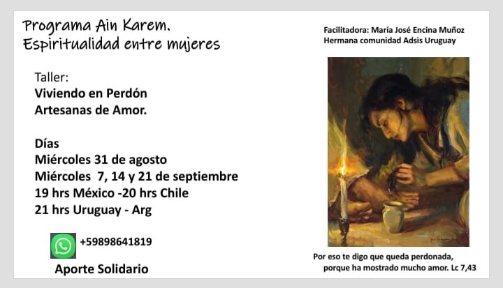 El Programa Ain Karem invita al taller “viviendo en perdón, artesanas del amor”, con la participación de María José Encina Muñoz…
