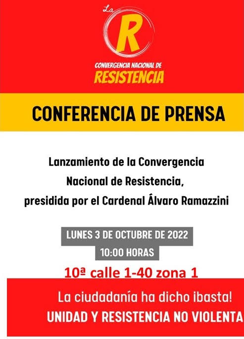 Conferencia de prensa del lanzamiento de la Convergencia Nacional de Resistencia, presidida por el Cardenal Álvaro Ramazzini…