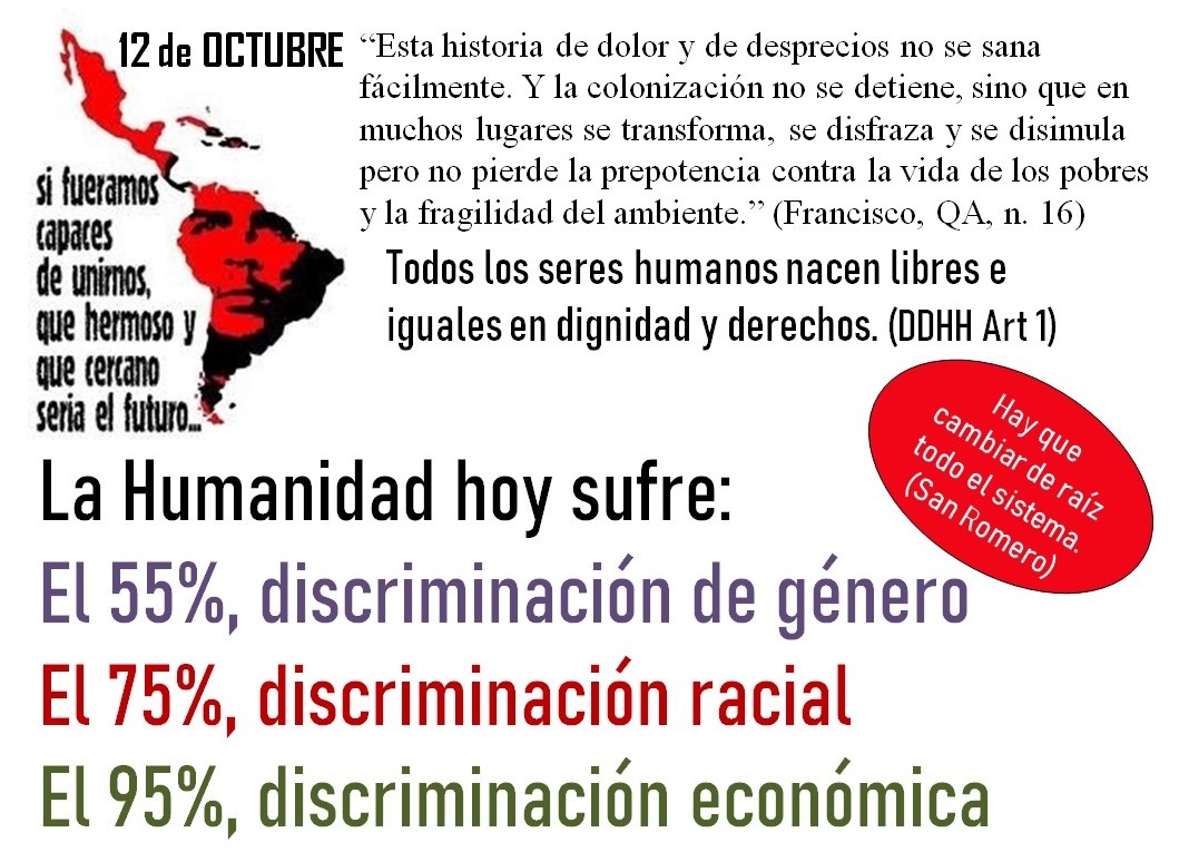 La humanidad hoy sufre: el 55%, discriminación de género; el 75%, discriminación racial; el 95% discriminación económica…