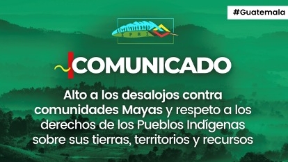 La organización de Derechos de los Pueblos Indígenas Internacional (IPRI, por sus siglas en inglés), cuya misión es hacer frente a la violencia y a la criminalización contra los pueblos indígenas, hace un llamado urgente al Estado de Guatemala para que detenga los desalojos y las agresiones de las fuerzas de seguridad contra las comunidades maya Poqomchi y maya Q’eqchi de Sierra de Minas, municipio de Purulha, Baja Verapaz. El Gobierno de Guatemala debe reconocer, respetar y proteger los derechos de los pueblos indígenas sobre sus territorios ancestrales...