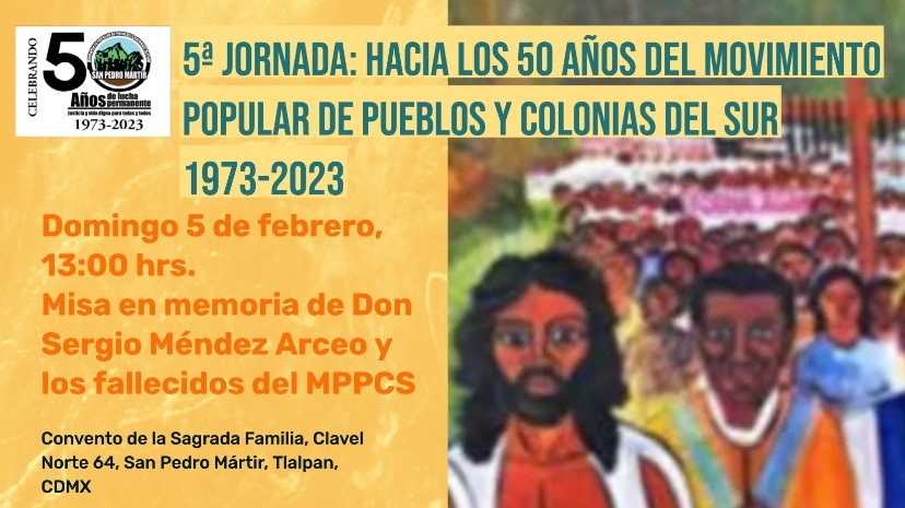 Jornada “hacia los 50 años del movimento popular de pueblos y colonias del sur” (1973-2023), en memoria de Don Sergio Méndez Arceo y los falecidos del MPPCS…