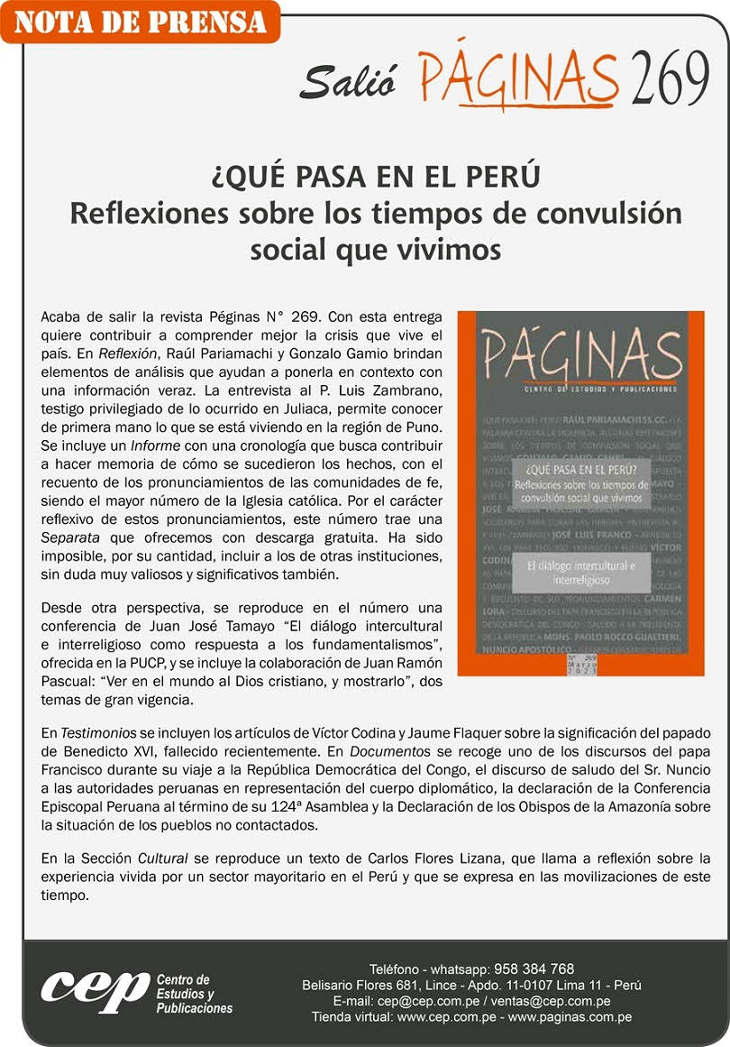 La edición 269 de Páginas presenta diversas reflexioens sobre los tiempos de convulsión social que vivimos…