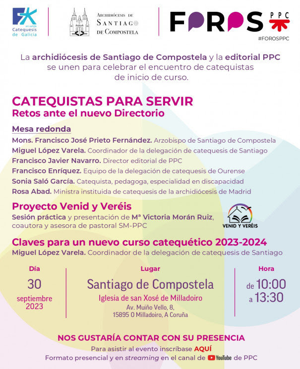 La Arquidiócesis de Santiago de Compostela y la Editorial PPC invitan al conversatorio “Catequistas para servir: retos ante el nuevo directorio”...