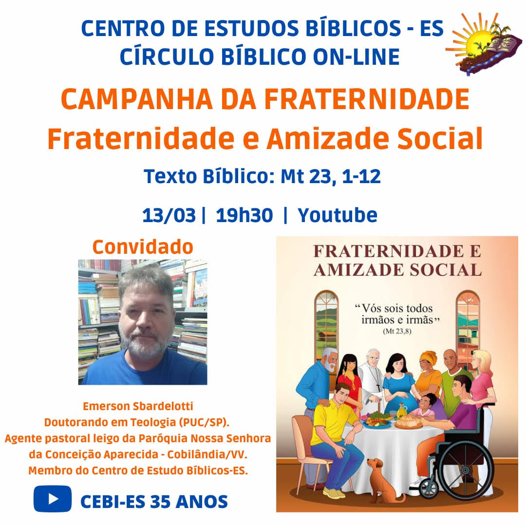 Círculo bíblico on-line sobre a Campanha da Fraternidade 2024: Fraternidade e amizade social. Convidado: Emerson Sberdelotti.