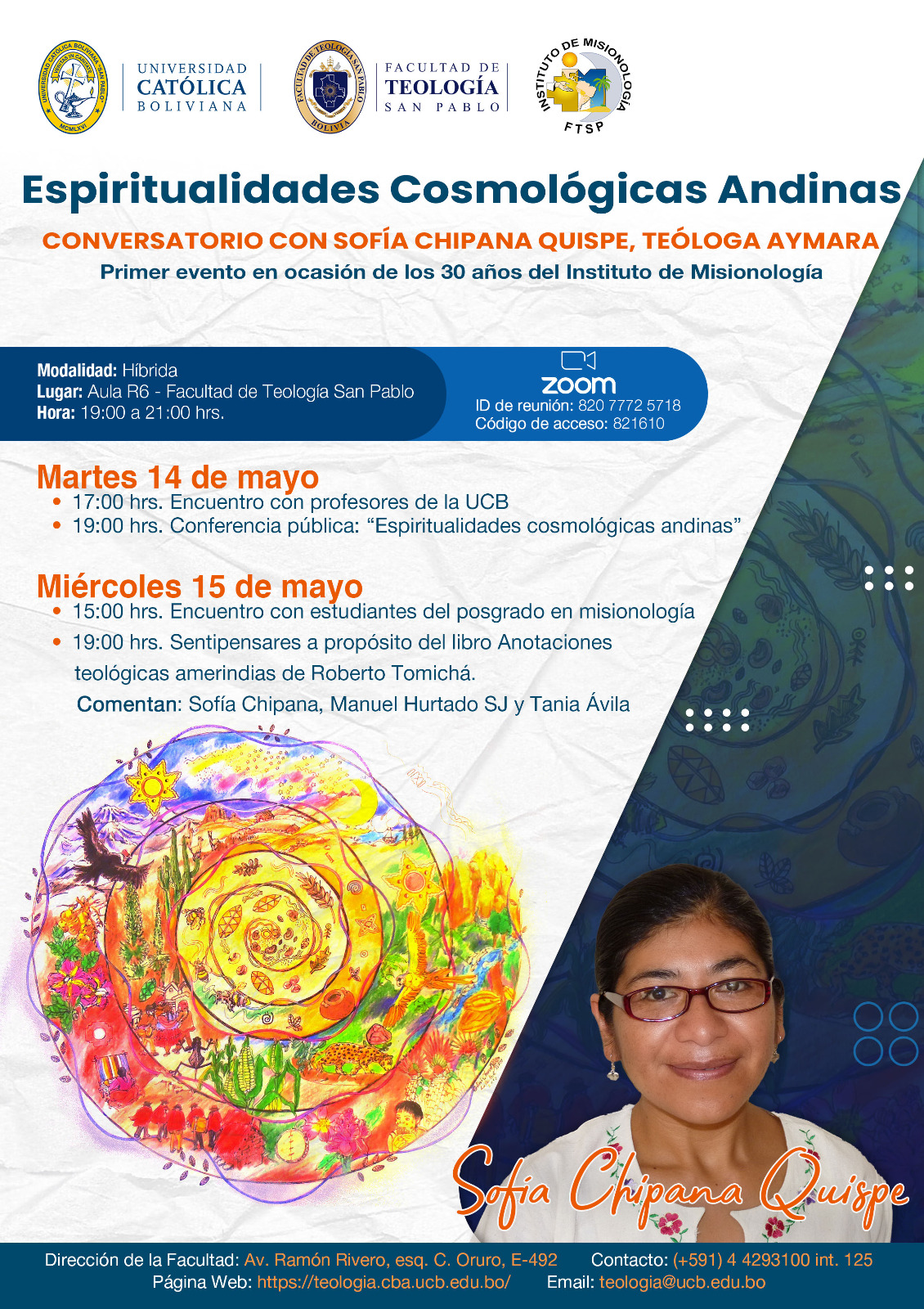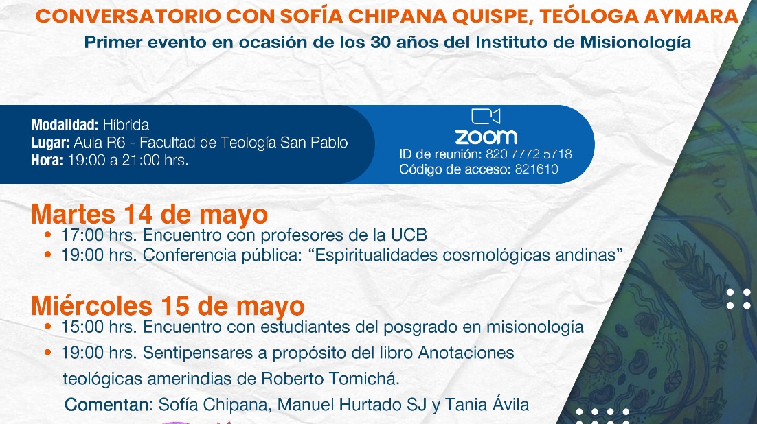 Conversatorio con Sofía Chipana Quispe, teóloga andina, sobre las espiritualidades cosmológicas andinas, el próximo 14 de mayo…