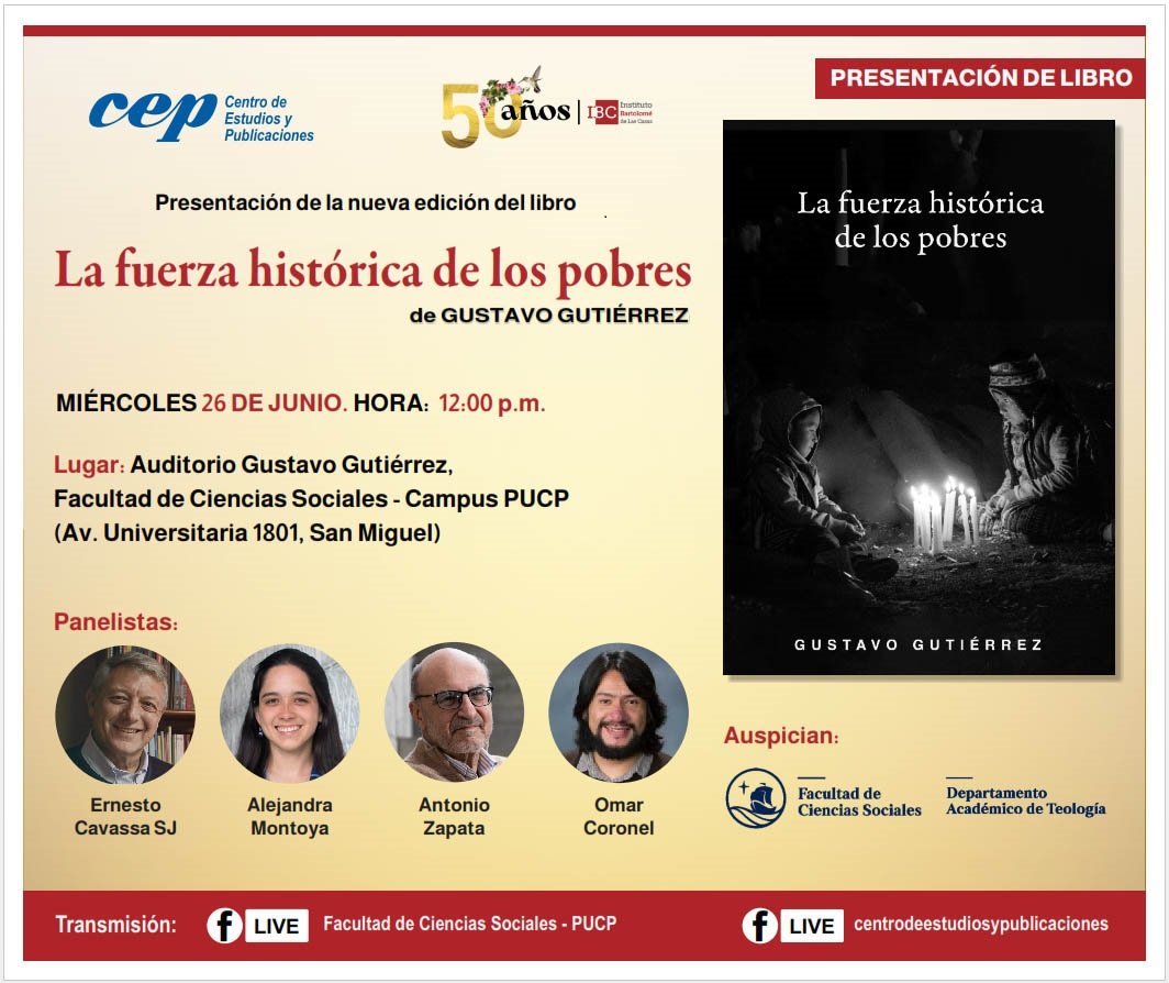 El Instituto Bartolomé de las Casas y el Centro de Estudios y Publicaciones invita a la presentación de la nueva edición del libro “La fuerza histórica de los pobres”, de Gustavo Gutiérrez…