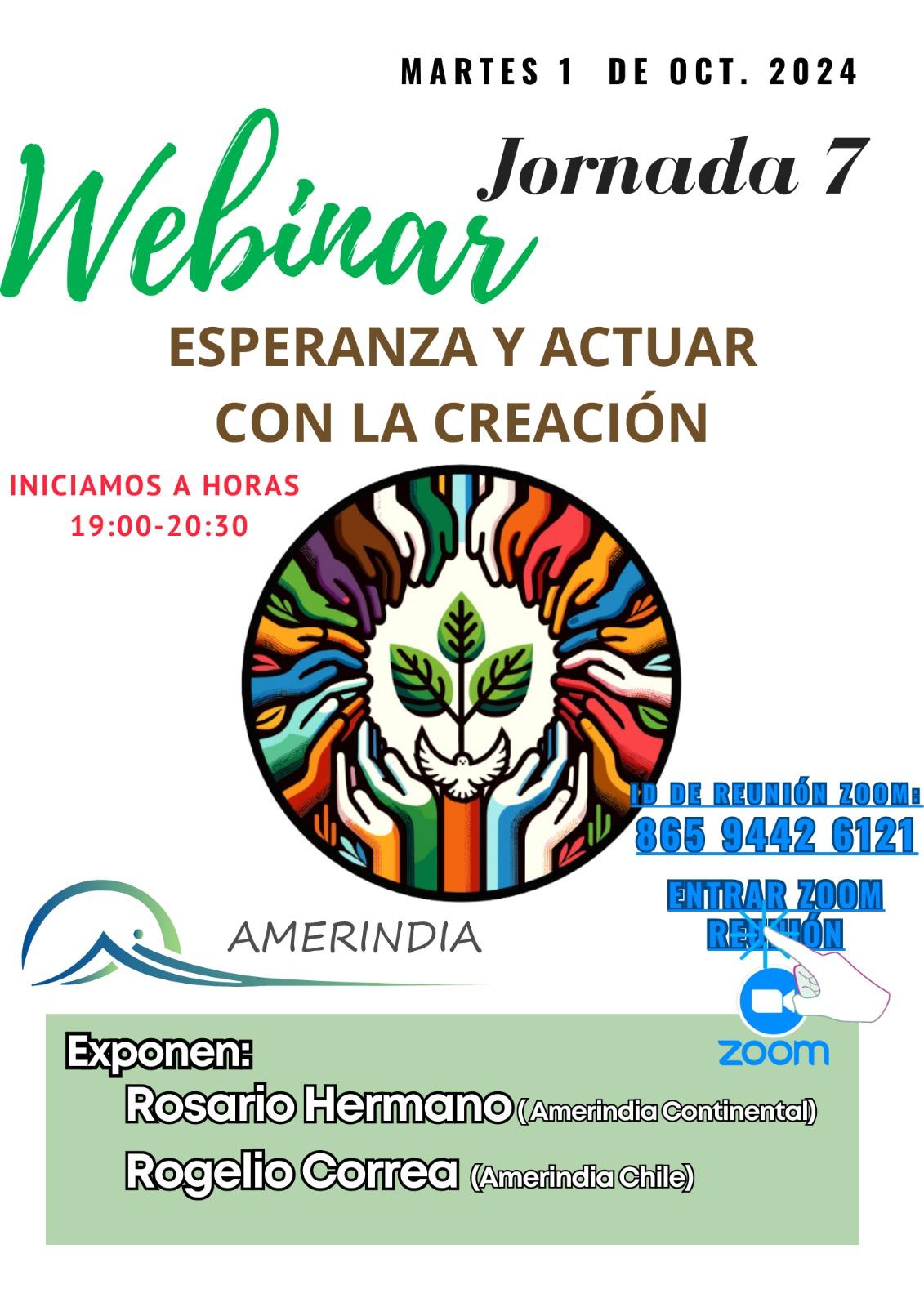 El próximo martes 1 de octubre a las 19:00 de Bolivia, tiene lugar el webinar “Esperanza y actuar con la creación”, con la participación de Rosario Hermano (Amerindia Continental) y Rogelio Correa (Amerindia Chile).