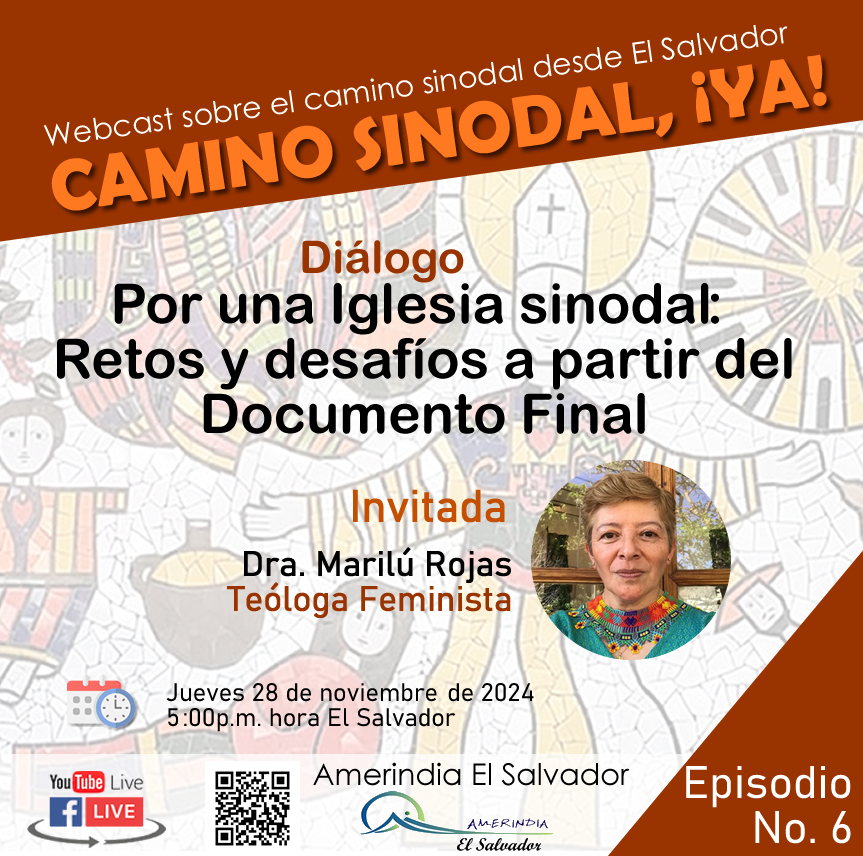 Amerindia El Salvador invita al 6.º episodio de su Webcast sobre el camino sinodal desde El Salvador, esta vez con la participación de la teóloga feminista Marilú Rojas. El tema del diálogo es: “Por una Iglesia sinodal: reos y desafíos a partir del Documento Final”…