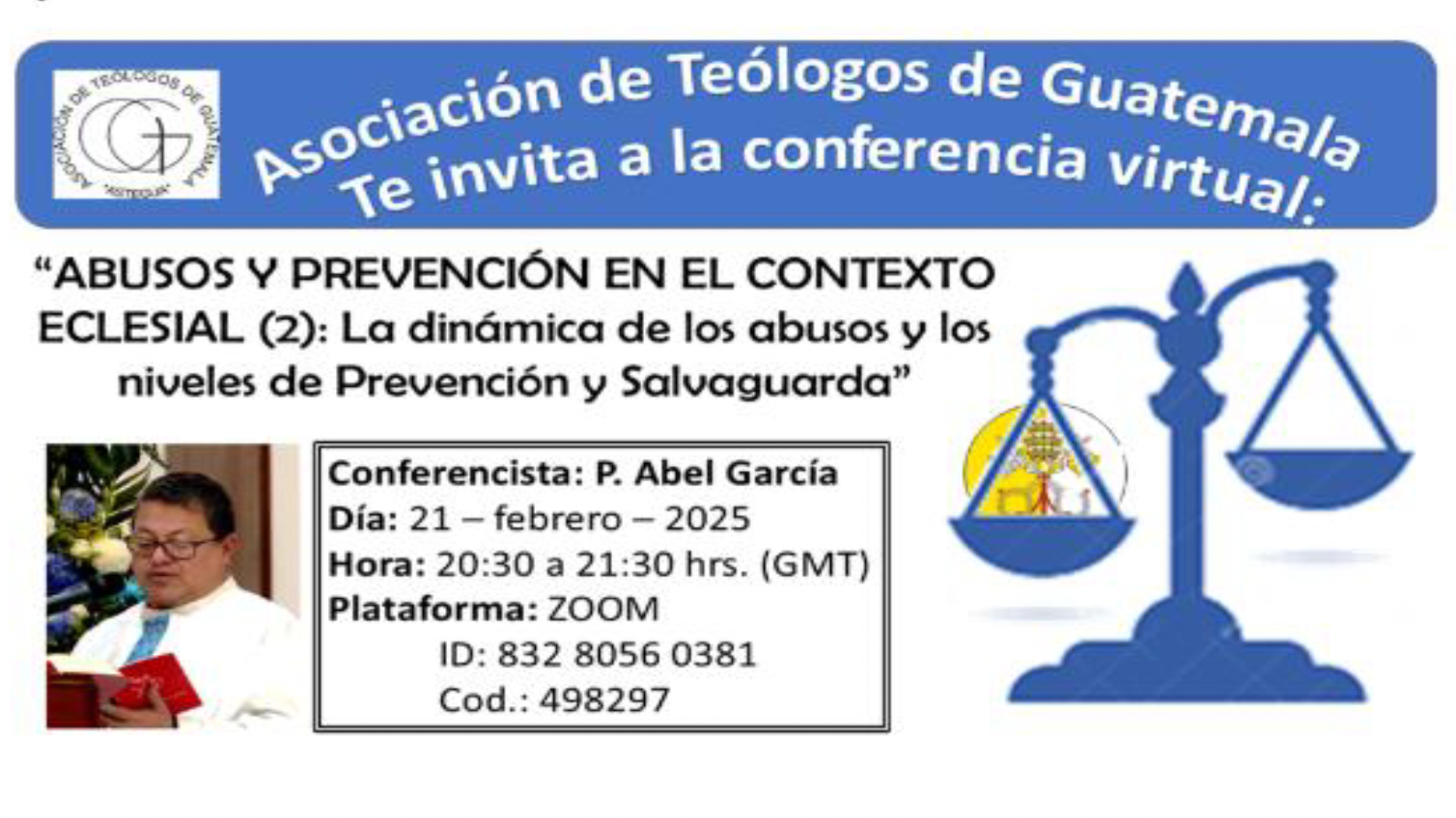 La Asociación de Teólogos de Guatemala invita a la conferencia vritual “Abusos y prevención en el contexto eclesial”, con la participación del P. Abel García…