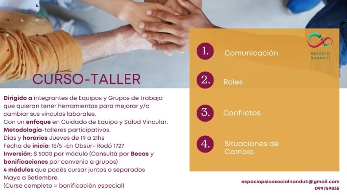 Este curso taller está dirigido a integrantes de equipos y grupos de trabajo que quieran tener herramientas para mejorar y/o cambiar sus vínculos laborales. Inicia el 15 de mayo.