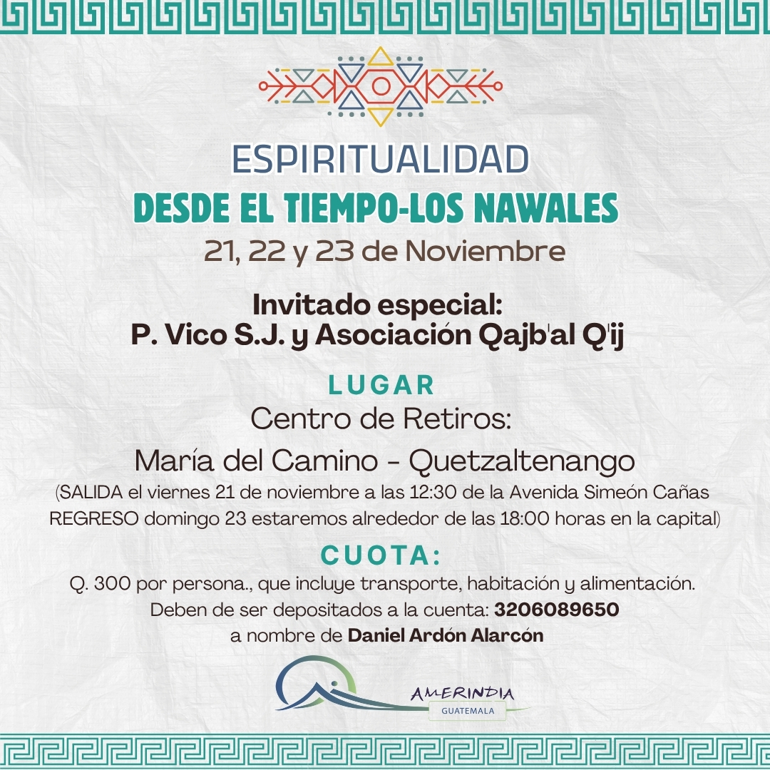 “Espiritualidad desde el tiempo – Los Nawales” es el título del evento organizado por Amerindia Guatemala para los días 21, 22 y 23 de noviembre.