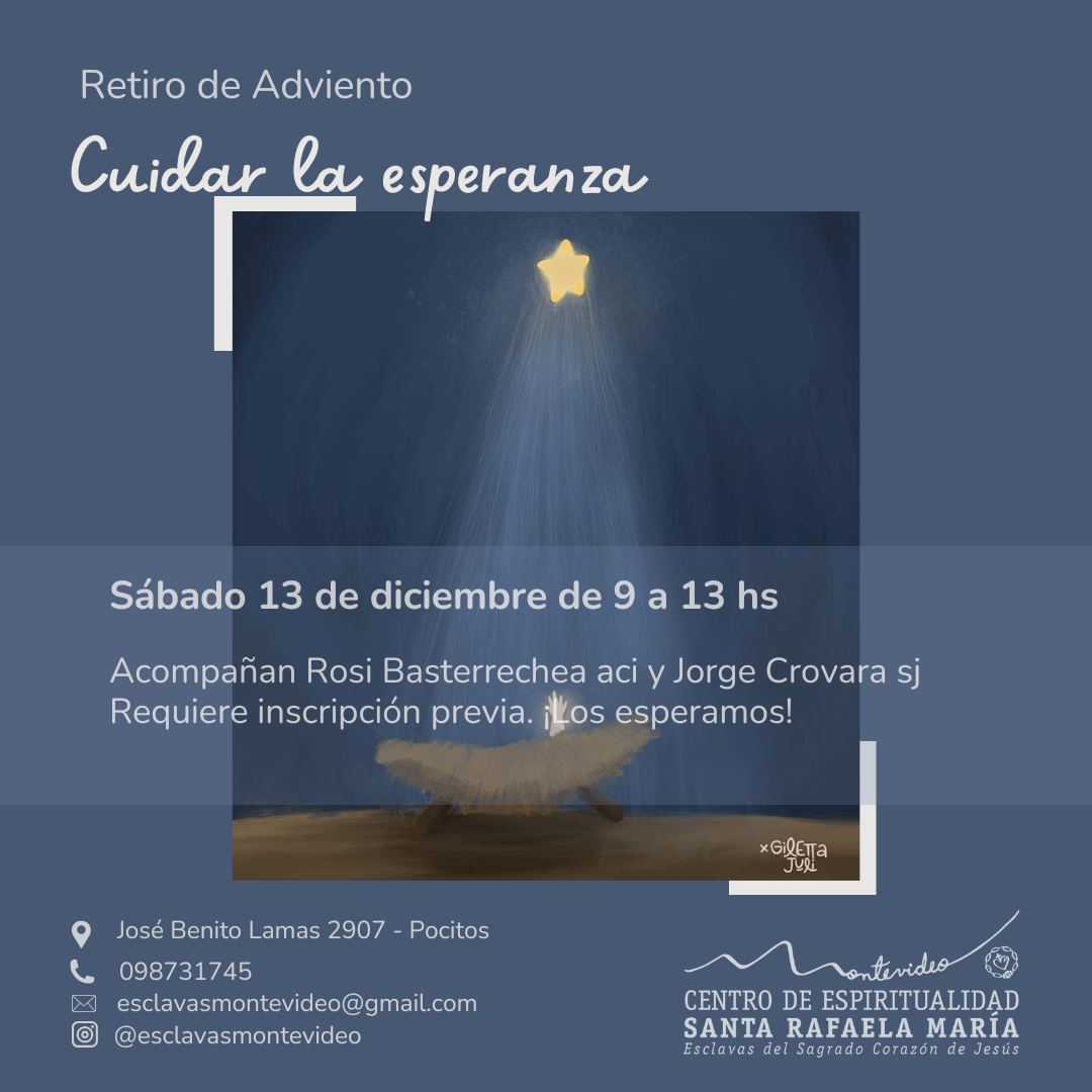 El Centro de Espiritualidad Santa Rafaela María invita al Retiro de Adviento “Cuidar la esperanza”, con la participación de Rosi Basterrechea y Jorge Crovara…