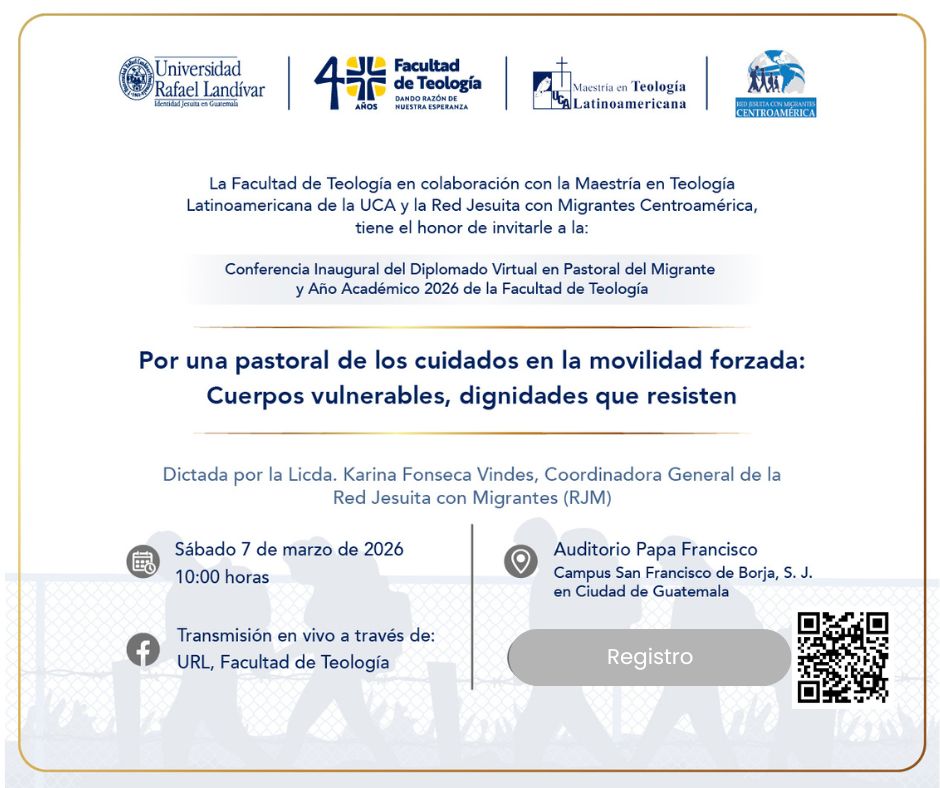 La Facultad de Teología de la Universidad Rafael Landívar en colaboración con la Maestría en Teología Latinoamericana de la UCA y la Red Jesuita con Migrantes Centroamericana invitan a la conferencia inautural del Diplomado Virtual en Pastoral del Migrante…