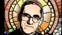 3. Nesta América ferida / de povos violentados, /São Romero está presente, / nas lutas ressuscitado.