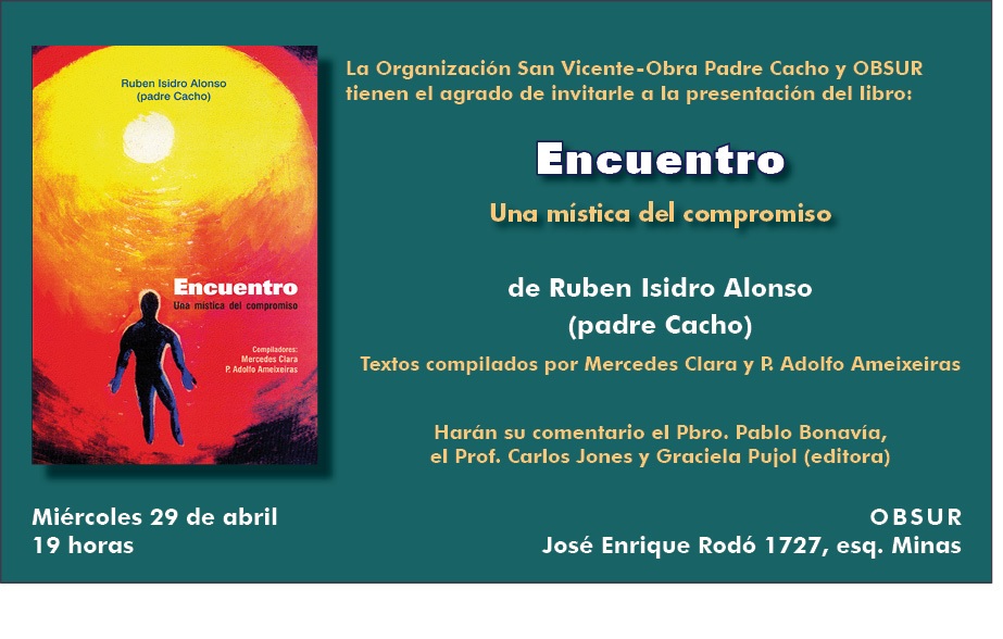La organización San vicente - Obra Padre Cacho y OBSUR tienen el agrado de invitarle a la presentacion del libro: Encuentro Una mística del compromiso