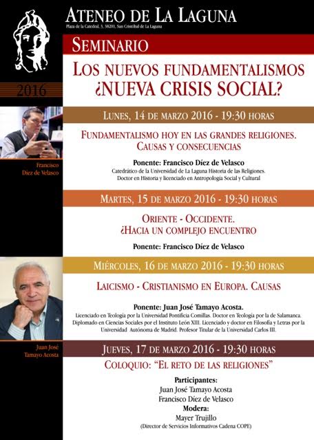 Invitación a participar en el Seminario: Los nuevos fundamentalismos: ¿nueva crisis social?, con la participación de Francisco Díez de Velasco y de Juan José Tamayo.