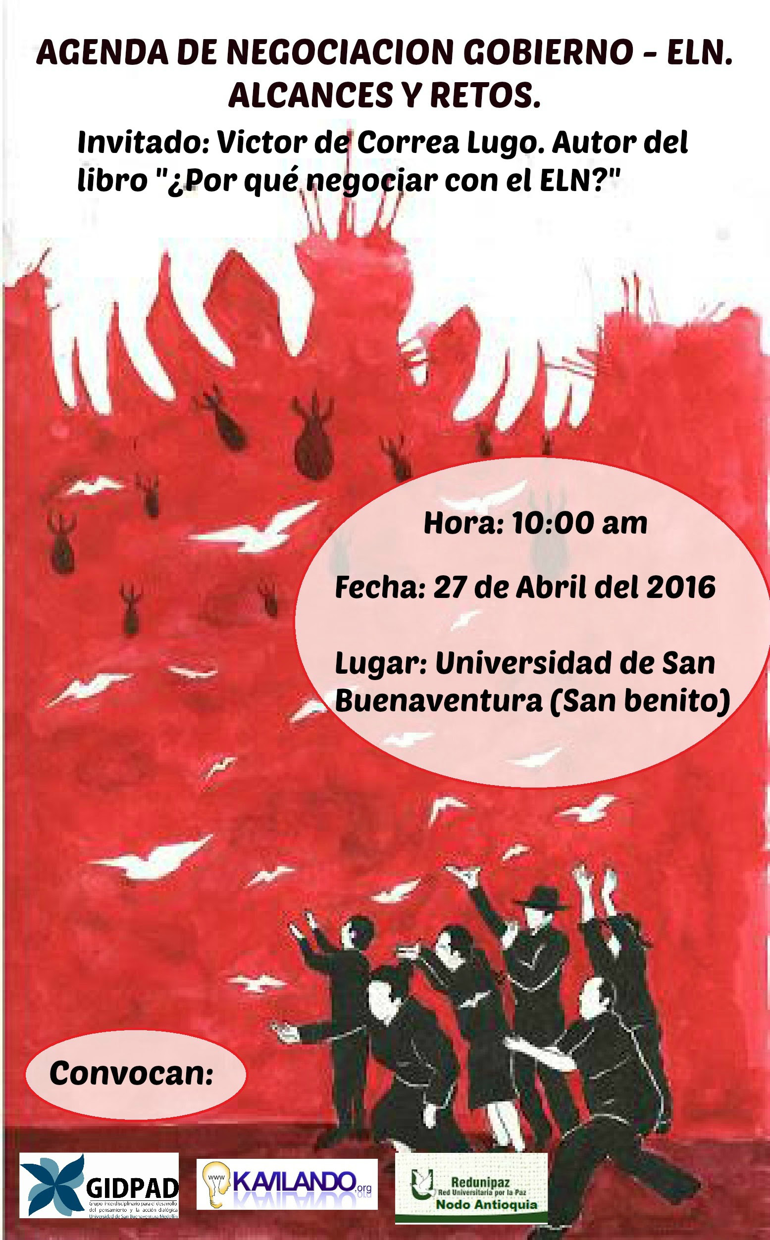 Invitación a la conferencia “Agenda de negociación Gobierno – ELN. Alcances y retos”. Invitado: Víctor de Correa Lugo. Autor del libro: “¿Por qué negociar con el ELN?”.