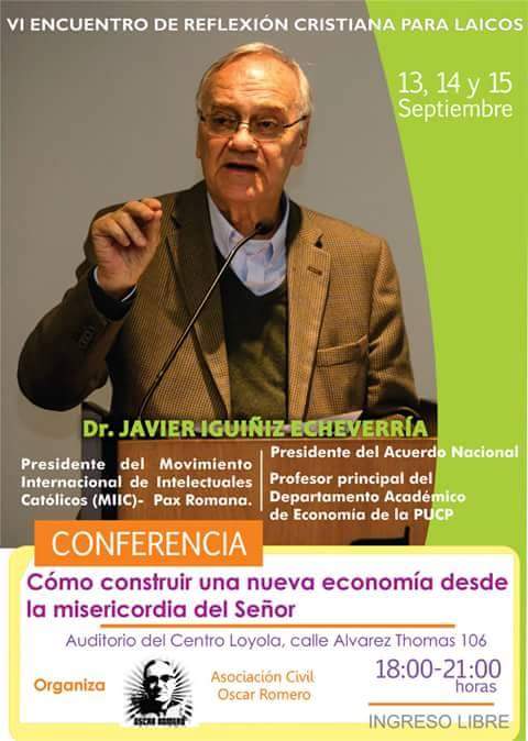 Conferencia: ¿Cómo construir una nueva economía desde la misericordia del Señor? Dr. Javier Iguiñiz Echeverría, presidente del Movimiento Internacional de Intelectuales Católicos (MIIC) – Pax Romana. Septiembre 13, 14 y 15.