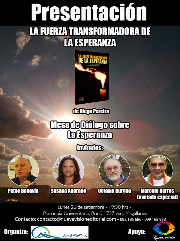 El lunes 26 de septiembre, en Montevideo, tendrá lugar la “Mesa de Diálogo sobre la Esperanza” y la presentación del libro “La fuerza transformadora de lo pequeño”, de Diego Pereira.