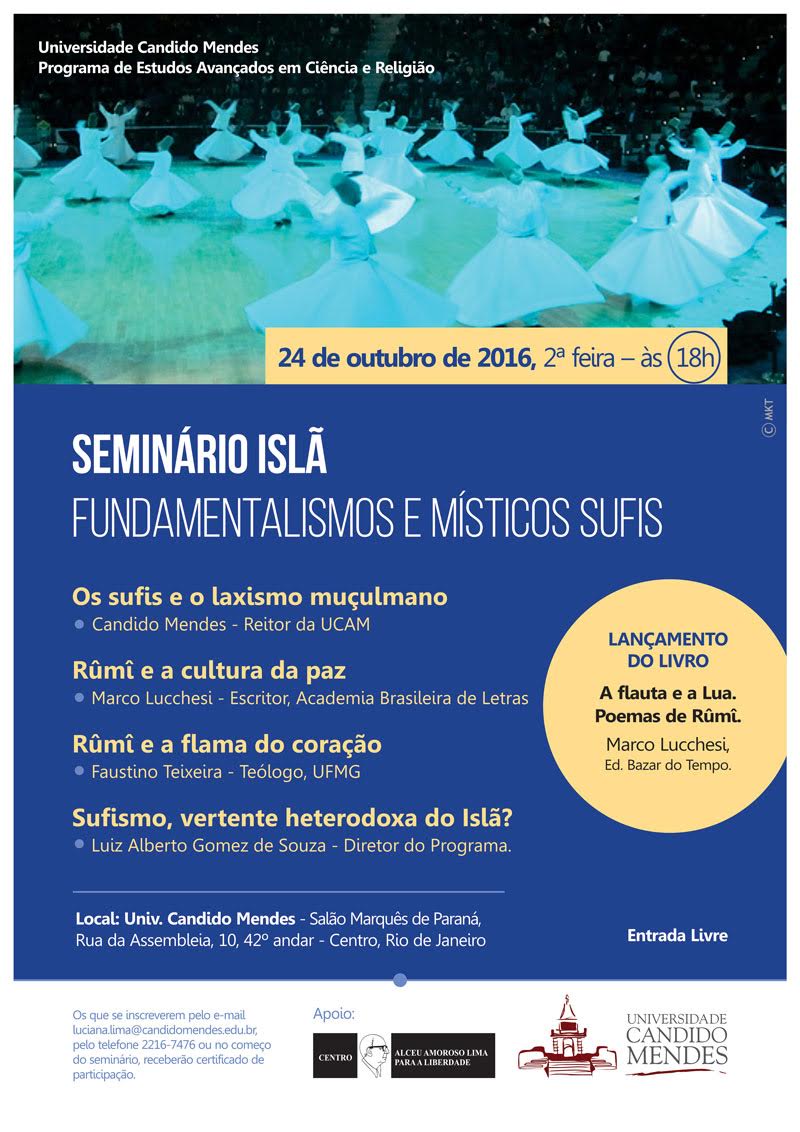 A Universidade Candido Mendes e o Programa de Estudos Avançados em Ciência e Religião, convidam ao Seminário Islã: fundamentalismos e místicos sufis. 24 de outubro de 2016.