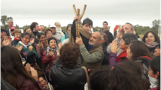 Pie de foto: un momento de oración comunitaria en Los Llanos, La Rioja.