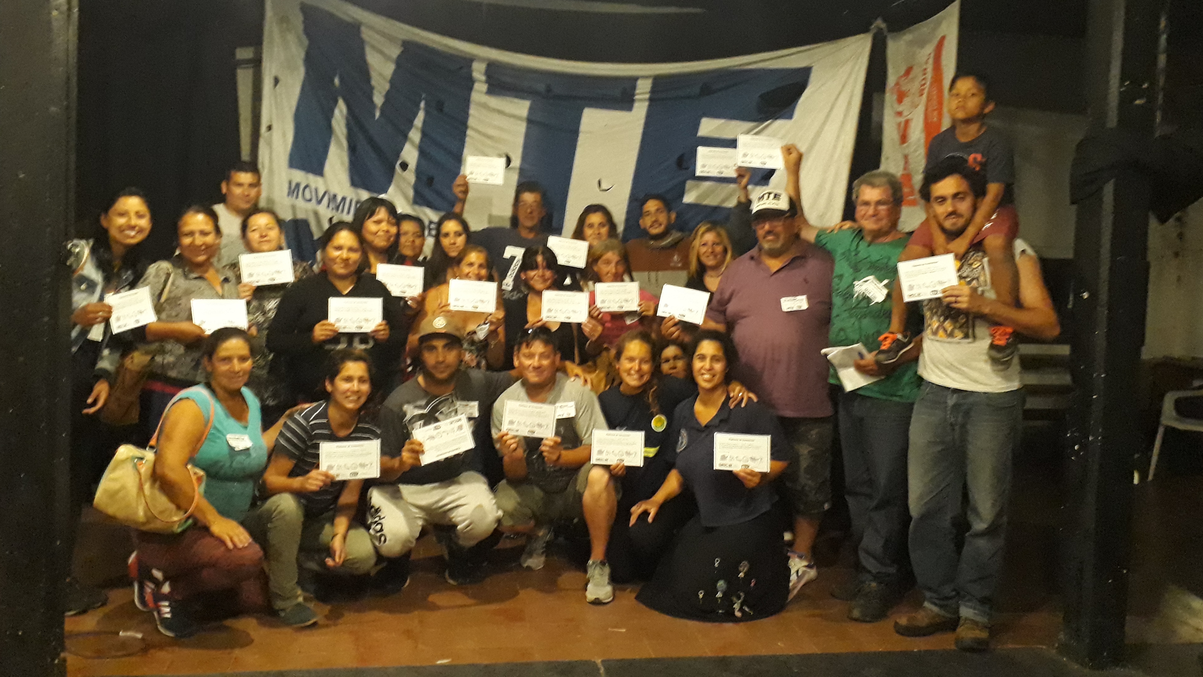 Pie de foto: participantes del taller del MTE, 15-12-18, CC América Libre, MDP.